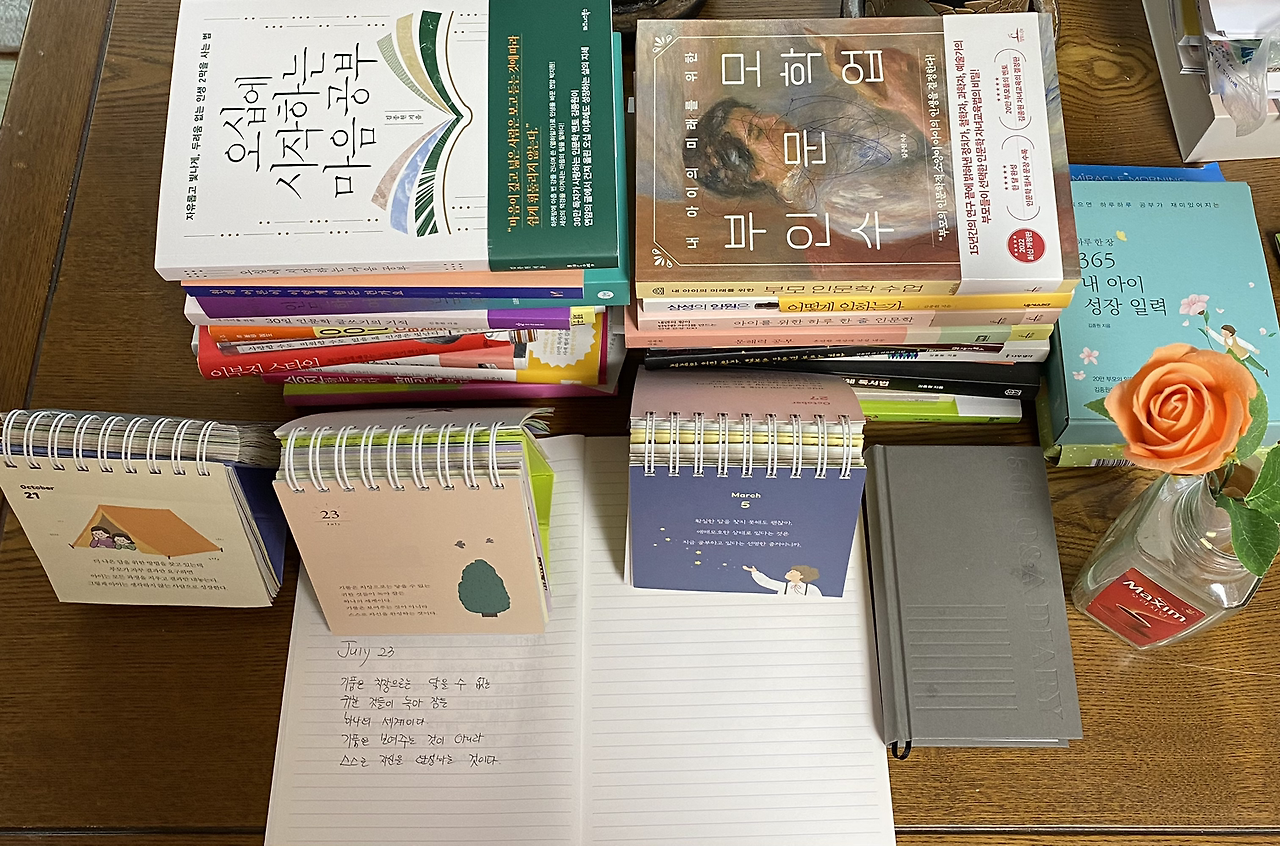 어제 아이는 오늘 끝나는 수업의 과제를 해야 할게 많다고 했다. 두 과목의 숙제 분량이 많아 날을 새도 다 하지 못할 거라고 하는 아이가 혼자서 걷는 이유가 있을 시간을 늦은 밤까지 보내야 했을 것이다. 오늘의 필사 글을 보다 보면 아이는 시간과 진심이라는 두 단어를 스스로 정의해 갔음을 알 수 있다. 내가 아이 나이 때 시간과 마음의 철학을 찾을 수 있었을까 늘 마음으로 방황하던 지난날 내가 보낸 시간을 다시 만날 수 없기에 나는 중년 이후 지금부터가 언제나 가장 소중하며 절실하게 쓰며 살고 싶은 순간이다.