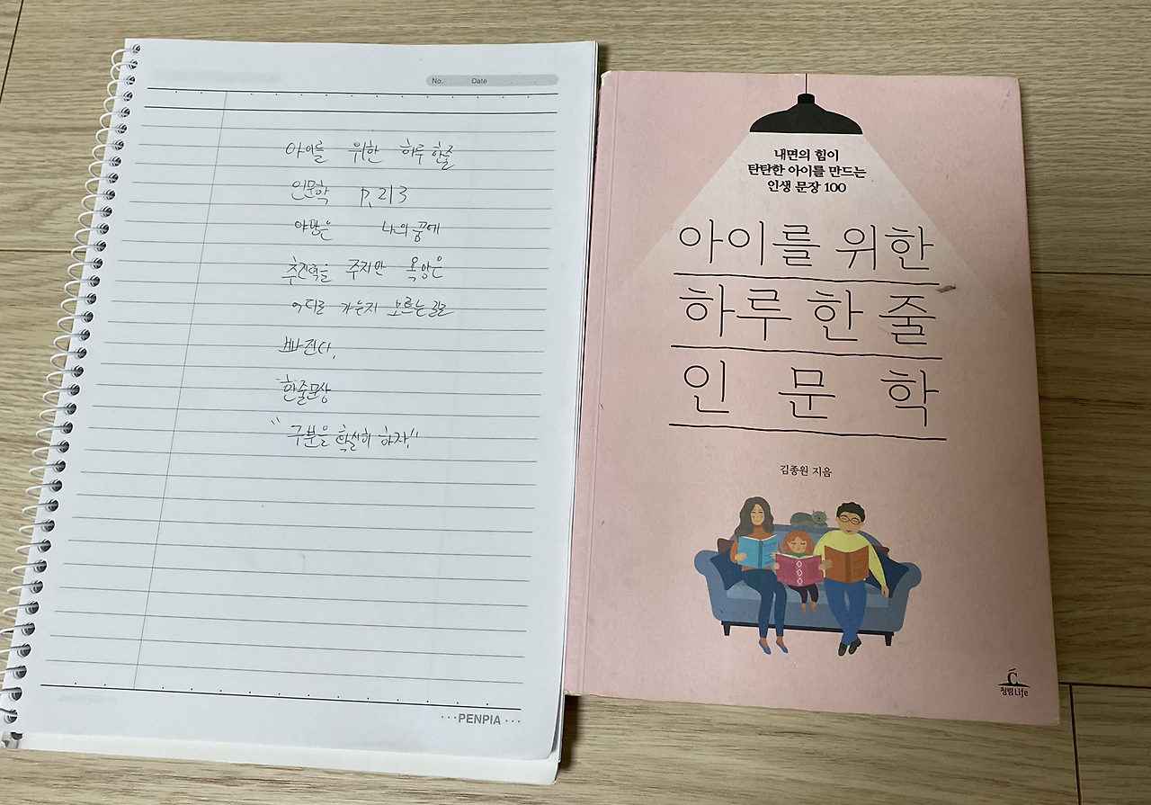 2. 아이를 위한 하루 한 줄 인문학 213p를 읽고