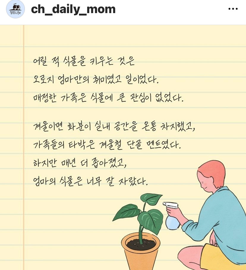 자식이 바라보는 엄마의 식물이야기 가 눈길을 끌며 이런 맞는 제목이 바로 아이이며 부모가 바라보는 예쁜 마음이겠지요. 생각만 해도 아름다운 인간의 곁에 공존하는 식물과의 연결에서 얼마나 많은 그 무엇을 발견할 수 있을지 궁금해집니다.