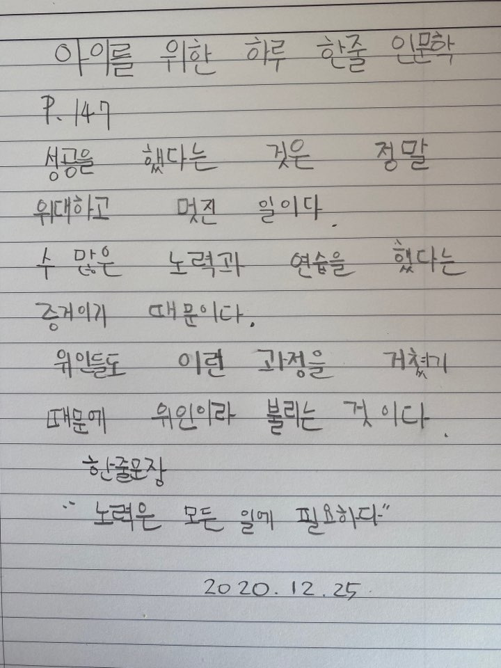 김종원 작가의 아이를 위한 하루 한 줄 인문학 147p. 를 읽고