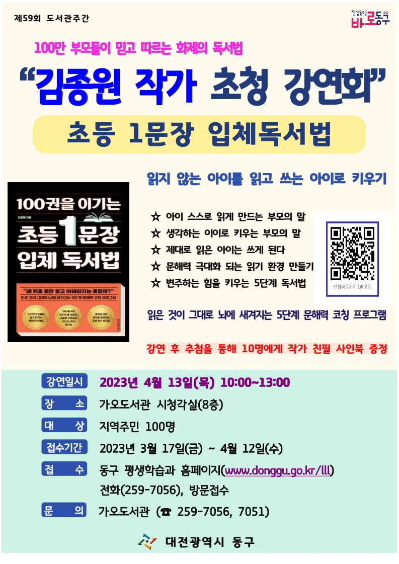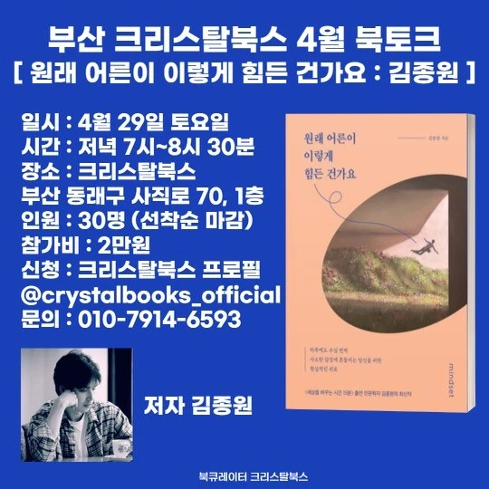 4월 김종원 작가님 공개 강연 소식입니다