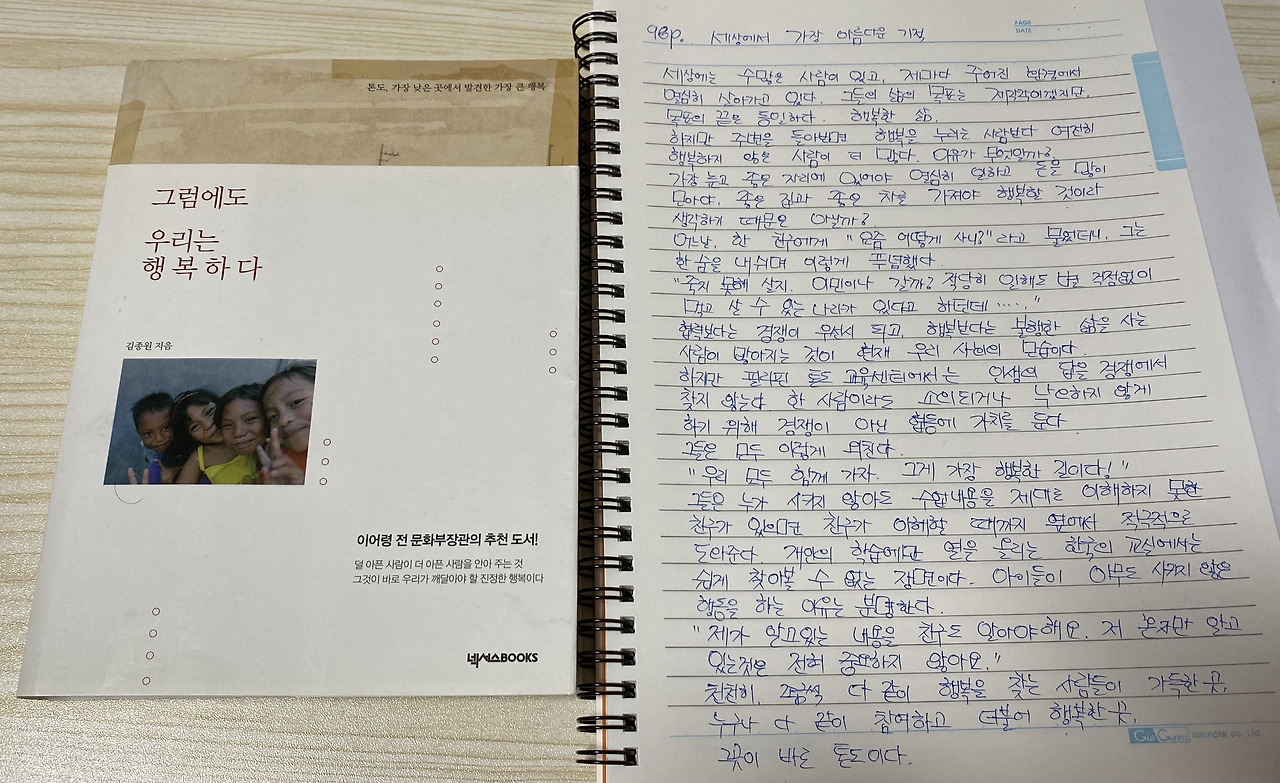 2014년에 출간된 세계 제3대 빈민 도시 필리핀 톤도의 아이들에게 인세가 전액 기부되는 책입니다. 이어령 전 문화부 장관의 추천 도서이죠. 필사 카페 치유도서 제1권으로 선정되었던 주문한 책을 받고 보니 필요한 곳에 내가 인세를 기부한다는 행복한 기분에 작가님의 고요한 기품이 느껴지는 감동을 도리어 제가 선물 받았던 추억이 있는 예쁜 책입니다. 우리는 그렇게 만났습니다.