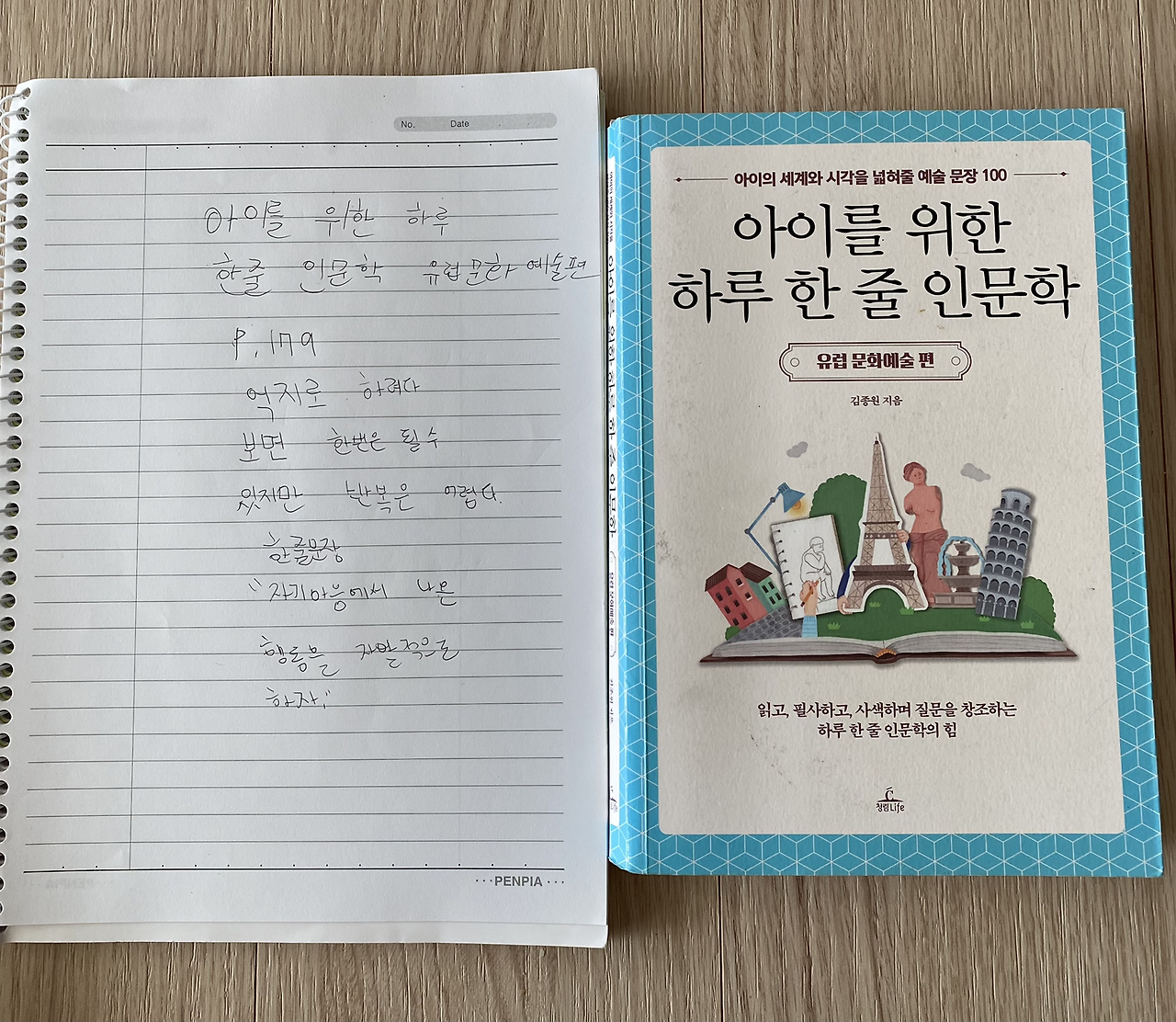 2. 아이를 위한 하루 한 줄 인문학 유럽 문화에술 편 179p 를 읽고 중3 필사