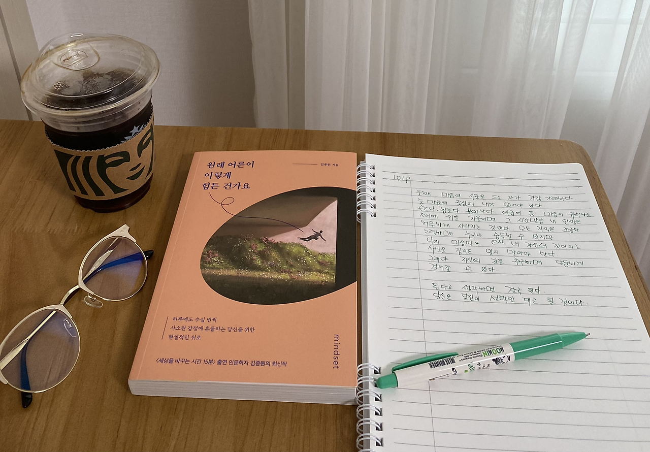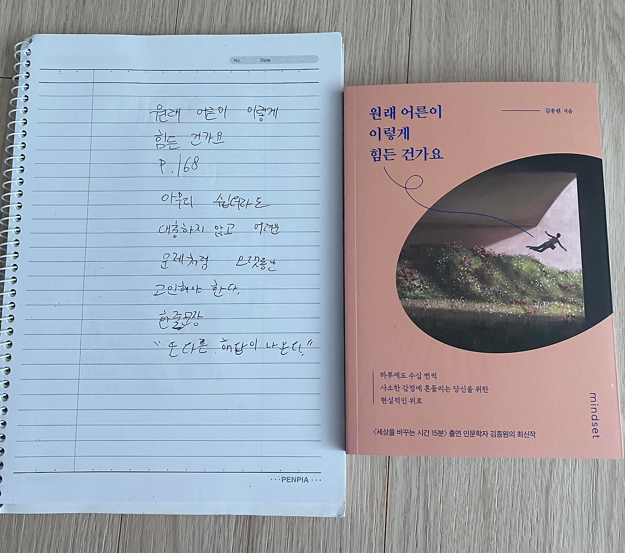 2. 원래 어른이 이렇게 힘든 건가요 168 p를 읽고 중3 필사