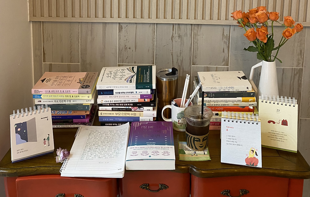 집으로 돌아와 중3 둘째가 쓴 필사글을 마주하며 각 한 권당 세 권의 쓴 글에서 내가 질문하고 정의해가는 한 줄로