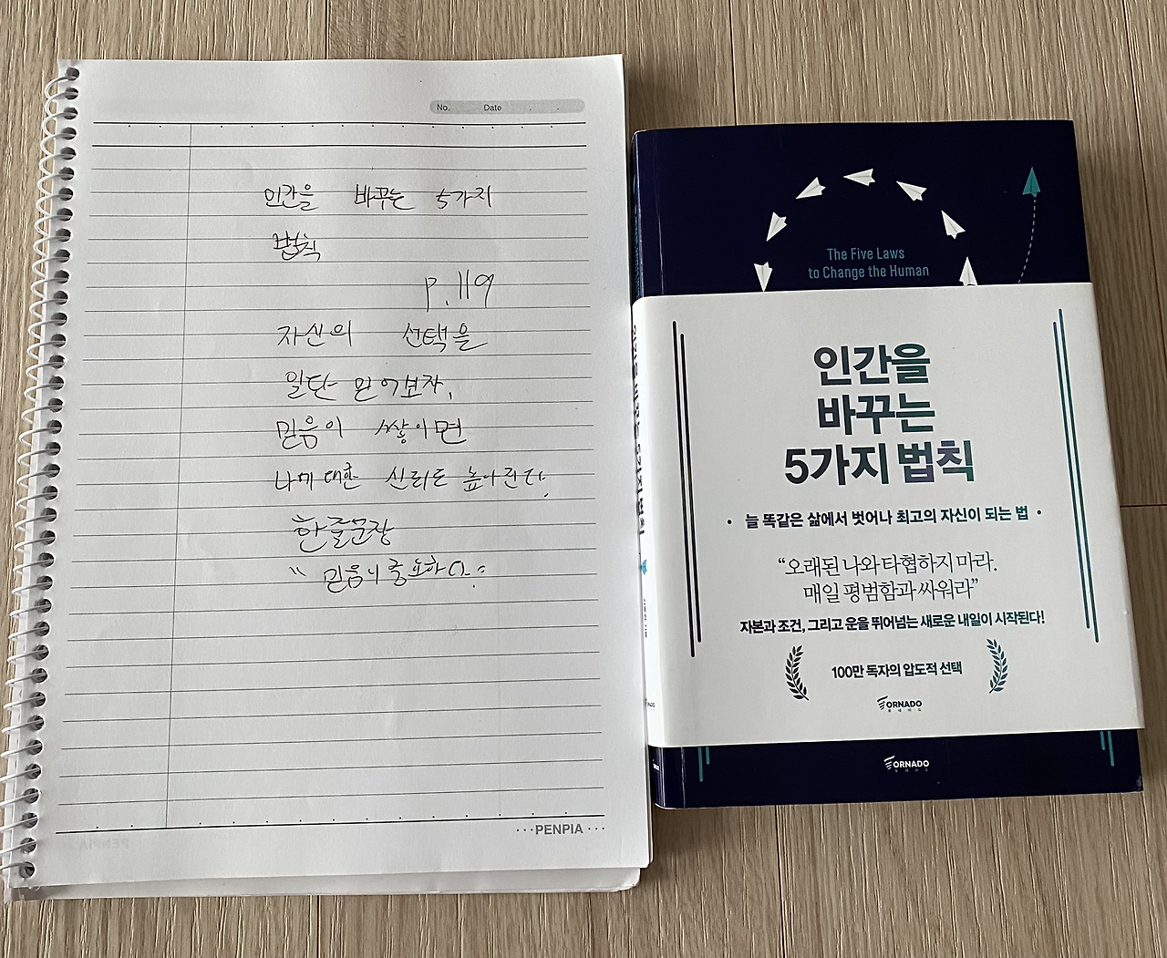 2. 인간을 바꾸는 5가지 법칙 119p를 읽고 중3 필사
