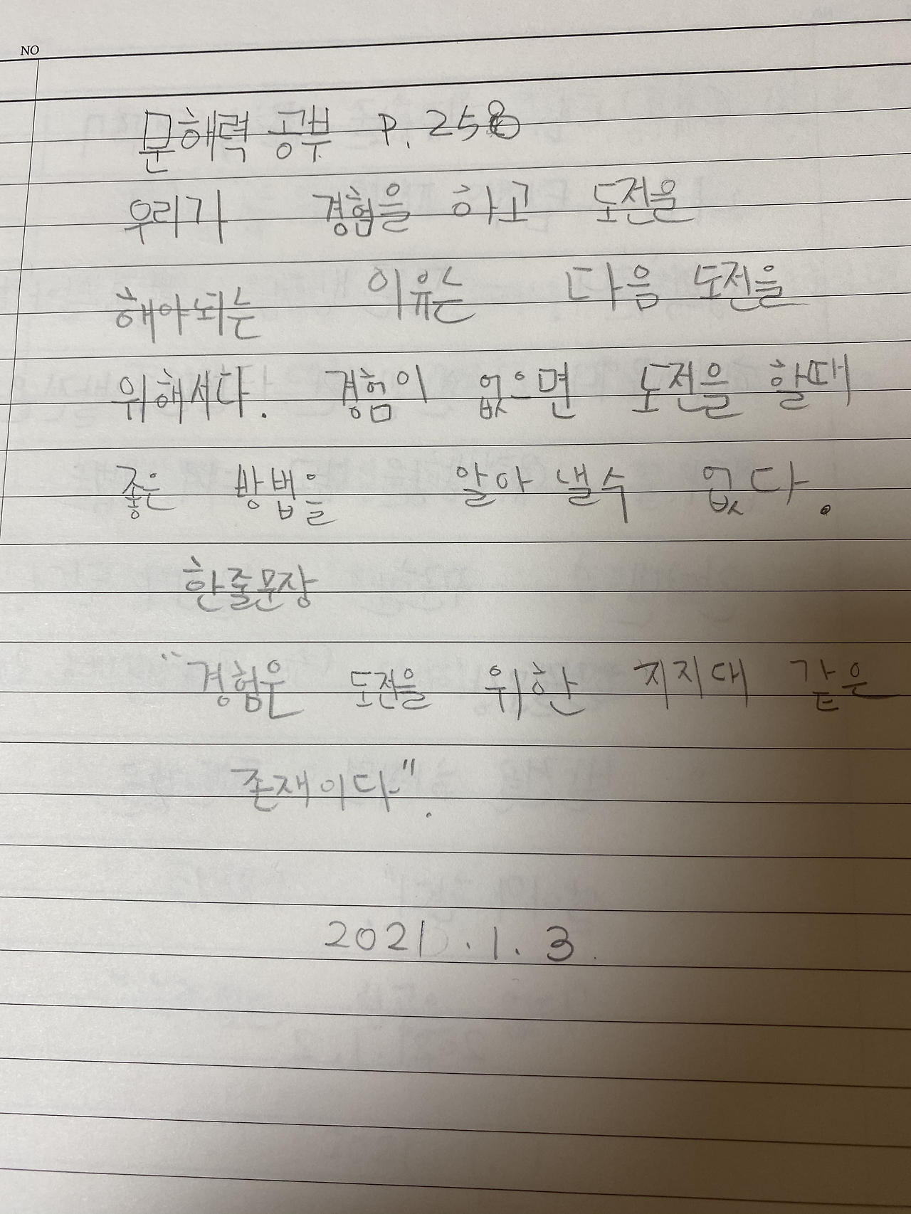 우리가 경험을 하고 도전을 해야 하는 이유는 다음 도전을 위해서다. 경험이 없으면 도전을 할 때 좋은 방법을 알아낼 수 없다.