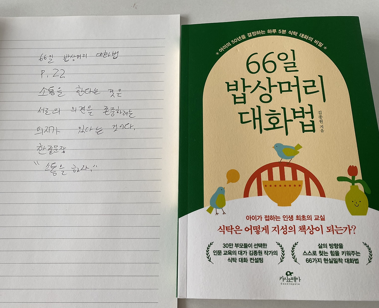 1. 66일 밥상머리 대화법 22p를 읽고 중3 필사
