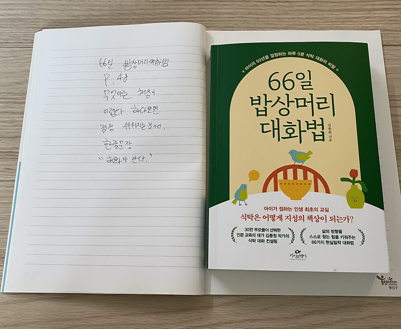 1. 66일 밥상머리 대화법 48p를 읽고 중3 필사