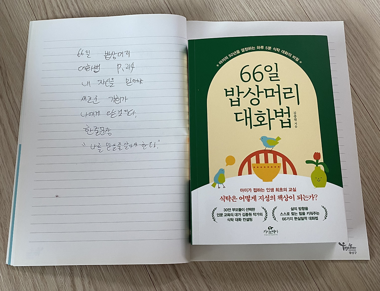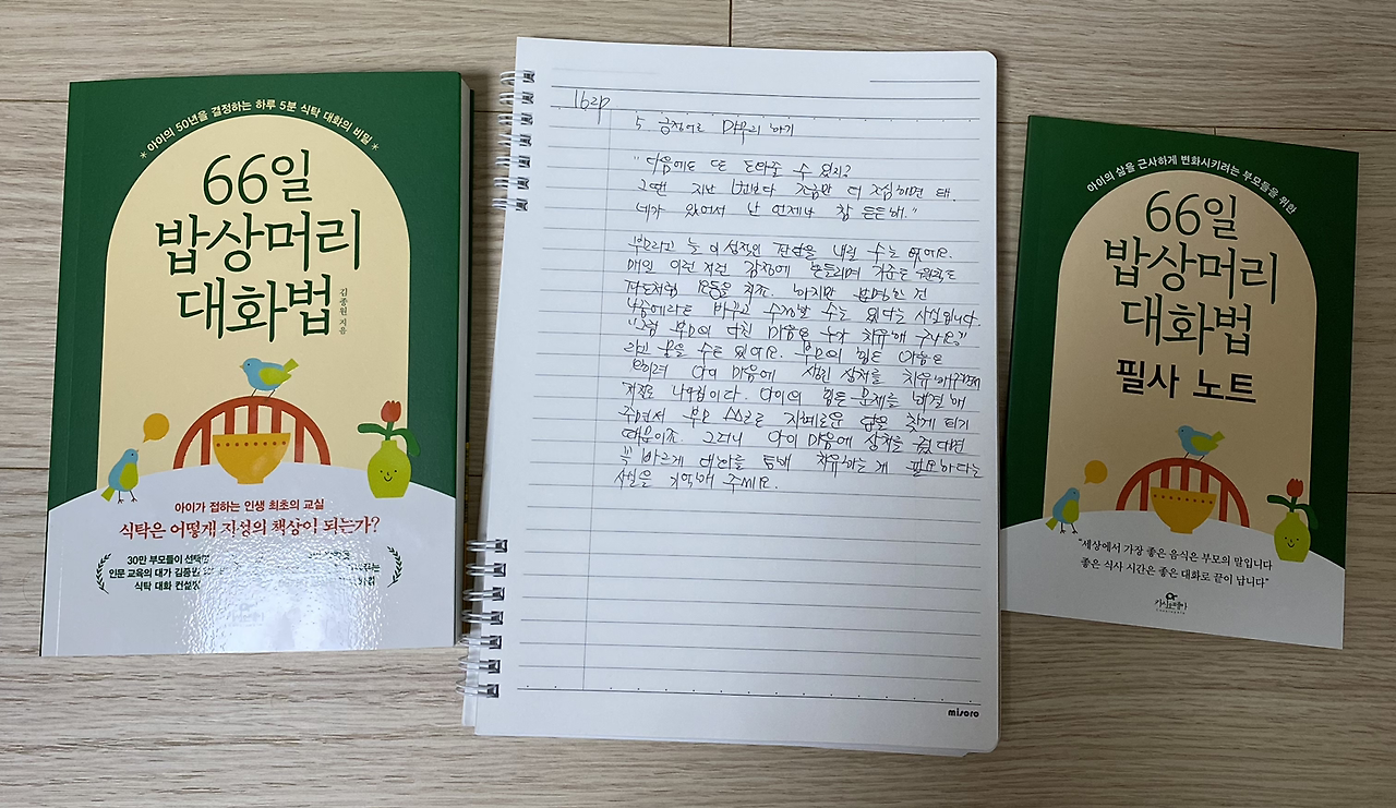 1. 66일 밥상머리 대화법 214p를 읽고 중3 필사