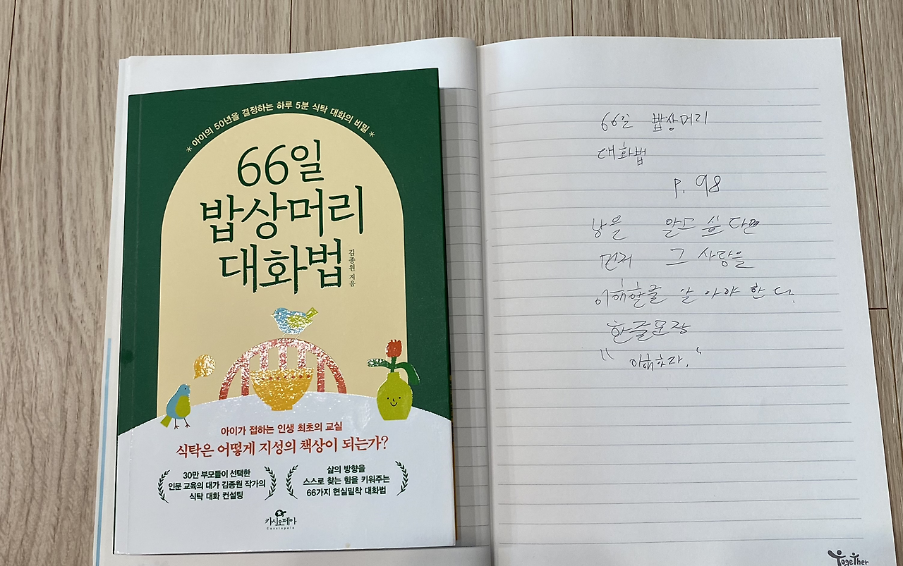 3. 66일 밥상머리 대화법 98p를 읽고 중3 필사