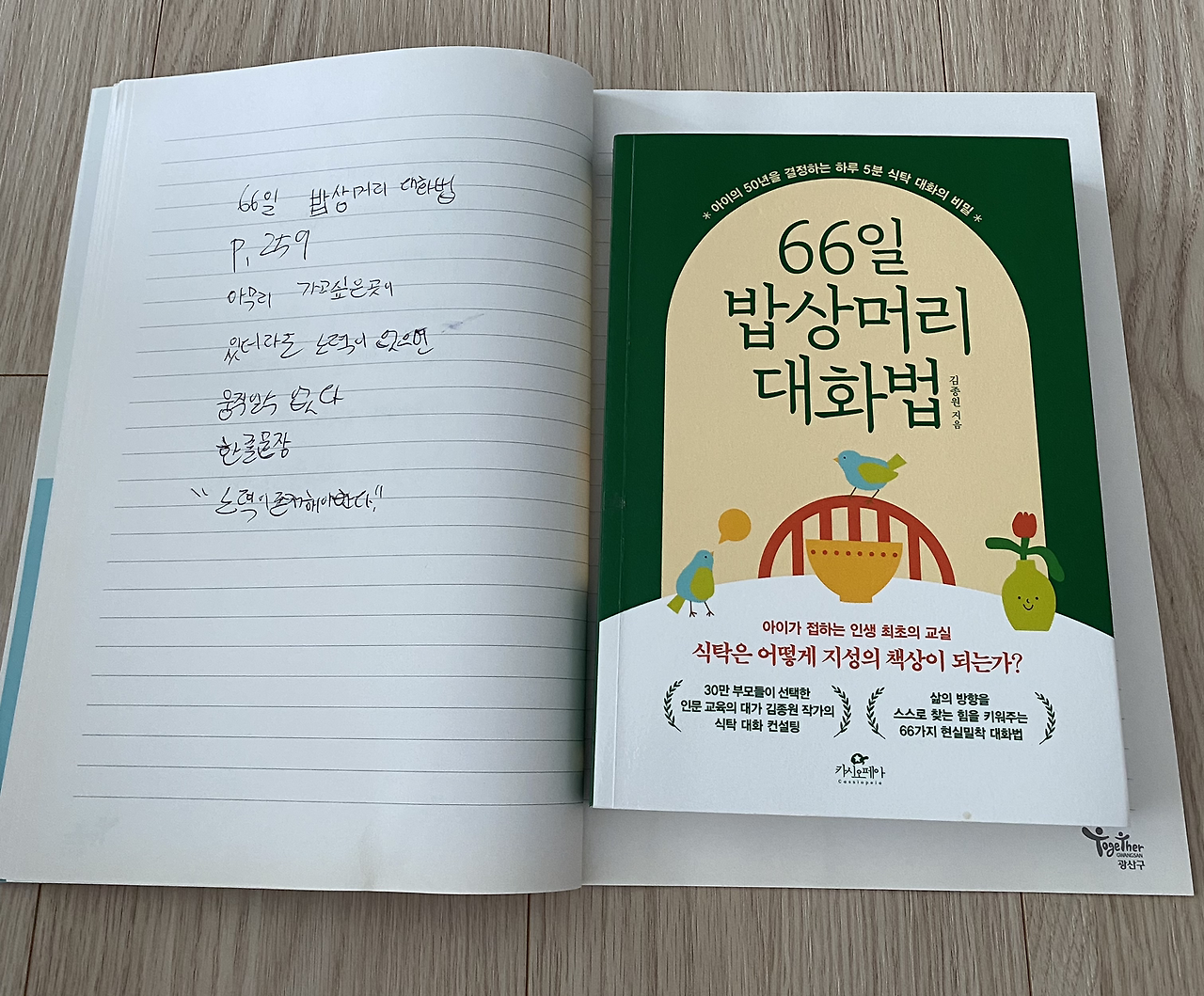 1. 66일 밥상머리 대화법 259p를 읽고 중3 필사