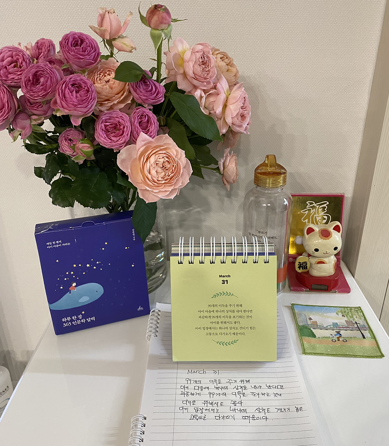 대 2 중3 아이들의 시험 기간이 다가오고 대학은 조금 더 일찍 시작되니까. 귀가가 늦어지고 새벽길이 빨라지는 아침과 밤의 시작과 끝이 짧아지고 길어지는 인간의 계절이 매일 찾아온다. 아침 일찍 일어나 두 아이의 식사 준비를 하는 시간이 간단하든 하지 않든 1시간 정도가 소요된다.