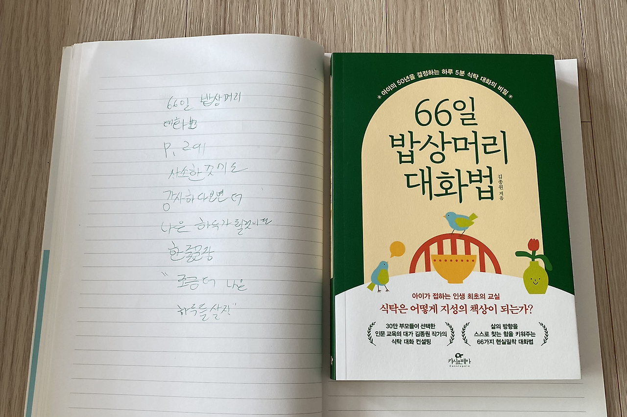 1. 66일 밥상머리 대화법 291p를 읽고 중3 필사