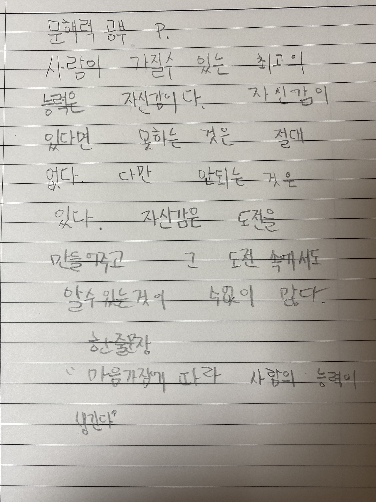“마음가짐에 따라 사람의 능력이 생긴다.”