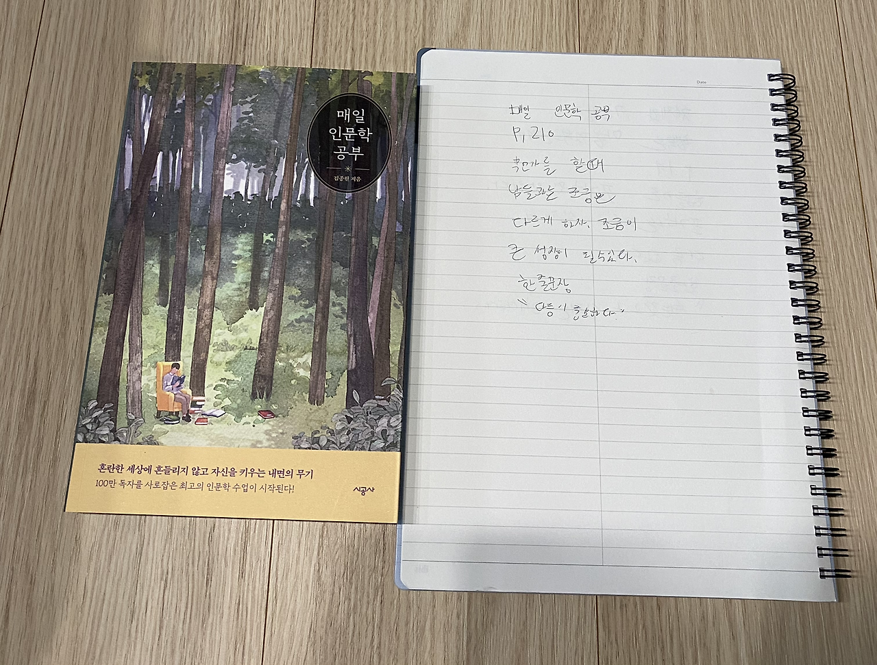 3. 매일 인문학 공부 210p를 읽고 중3 필사