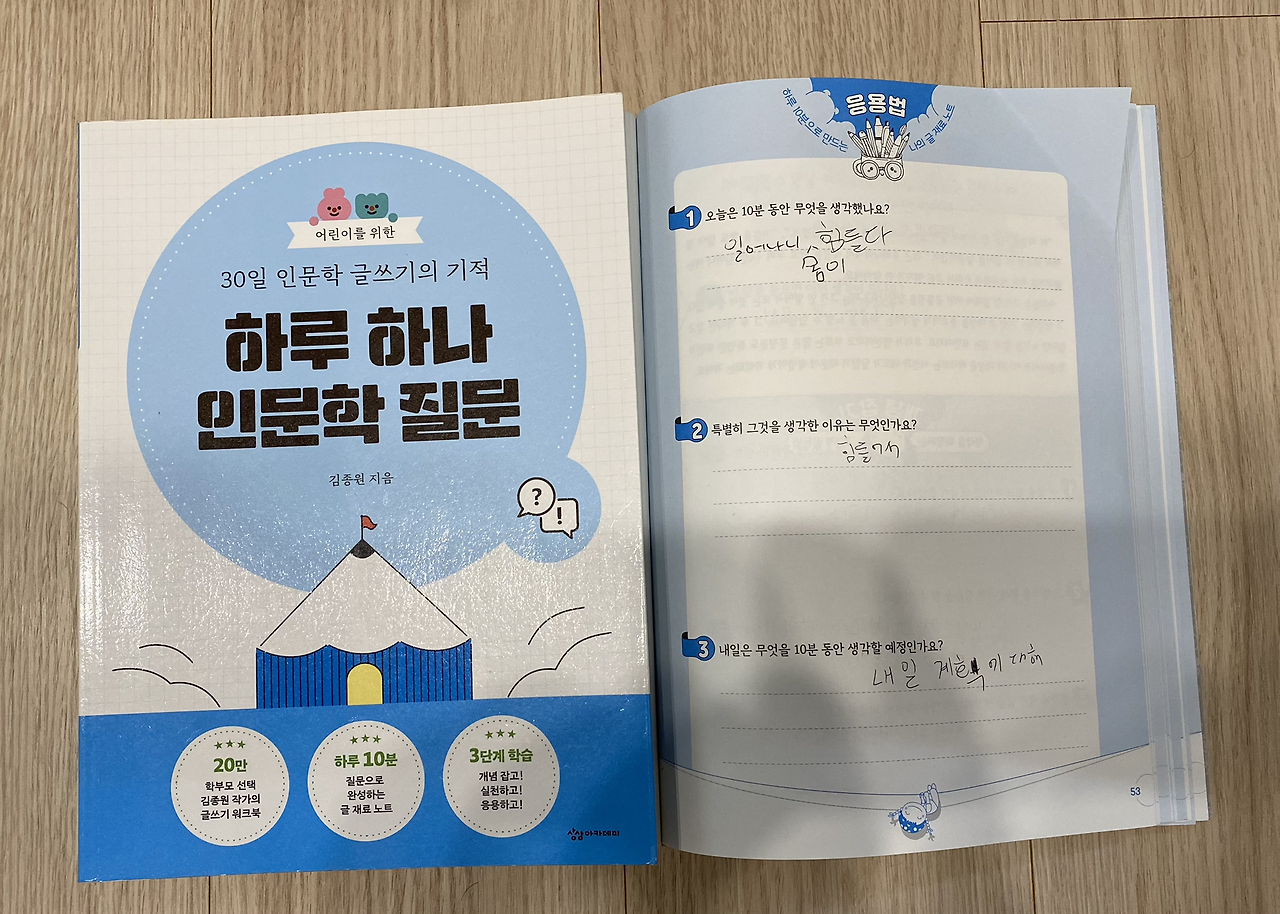 새벽 6시에 일어나 필사하겠다던 아이를 깨울까 하고 보니 곤히 차이든 아이를 두고 방 문을 닫았는데 얼마 지나지 않아 알림 소리가 나지 않았을 때 아이는 어느새 필사길을 향하고 있었다. 인문학 워크북 질문의 글을 조금 더 섬세하게 표현하면 좋겠다고 생각하다가 우리가 함께 생각해 볼 수 있는 주제를 남겨 준 것 같아 앞으로 대화를 나누면 좋겠다 싶어 기쁜 마음으로 필사의 흔적을 정리한다.