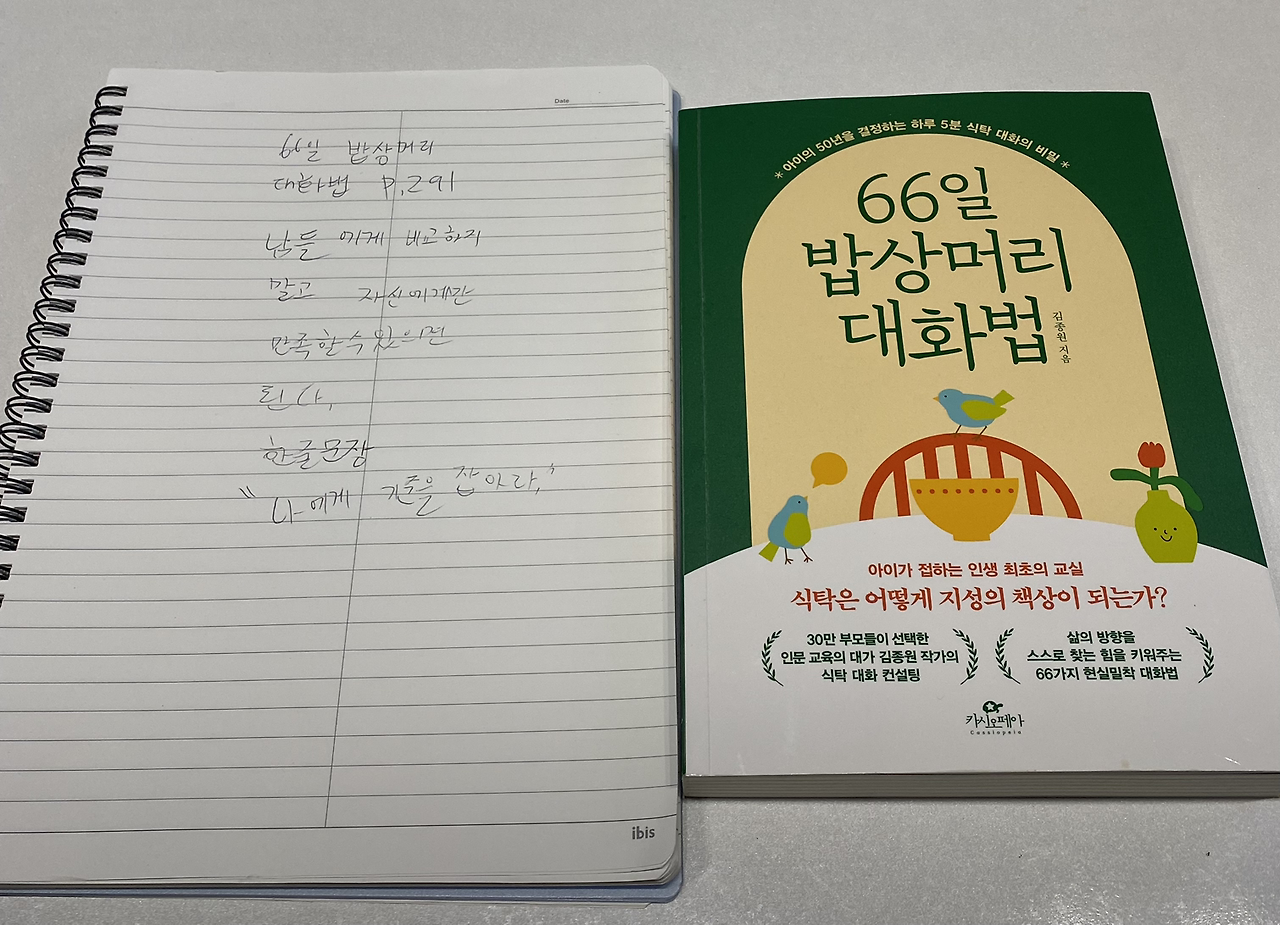 1. 66일 밥상머리 대화법 291p를 읽고 중3 필사
