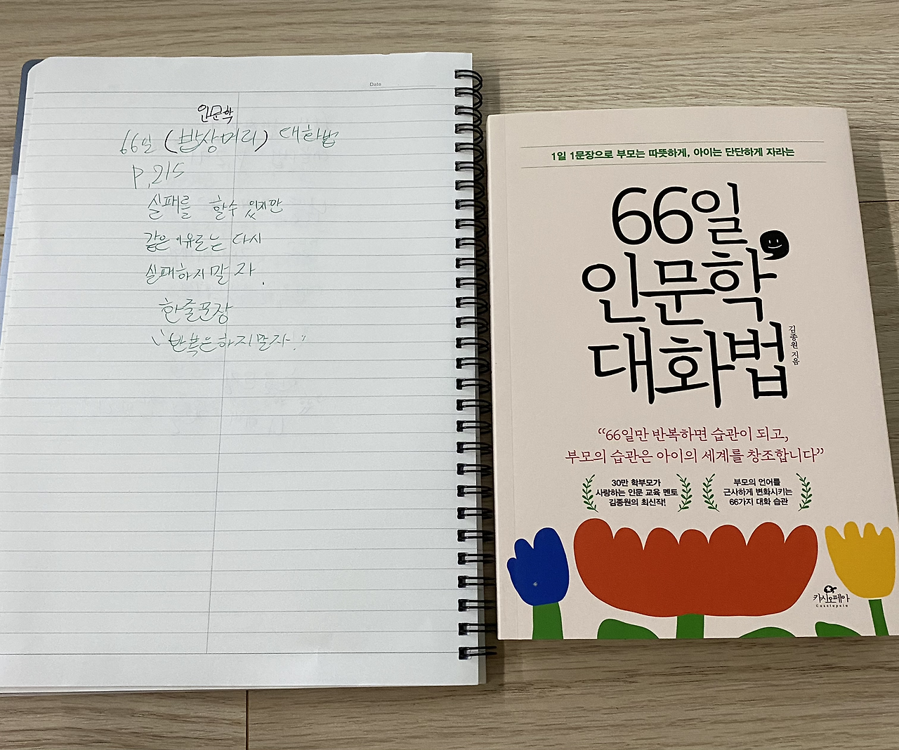 1. 66일 인문학 대화법 215p를 읽고 중3 필사