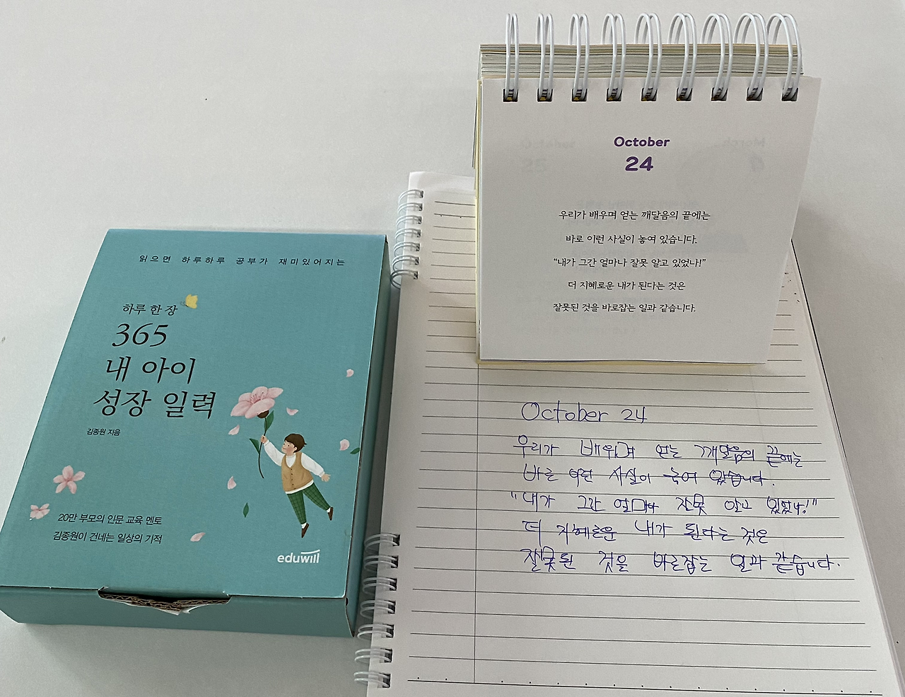 이제는 그런 못난 엄마가 되지 않고 싶어. 어떠한 삶이 와도 나에게 자랑스러운 엄마가 될 수 있으니 너를 걱정시키는 엄마가 아닌 늘 같은 길을 당당하게 걷는 내가 되어 줄 거야. 지금처럼 우리 지성 가득 따스한 마음으로 서로의 내일을 믿어주고 아껴주고 많이 안아주는 멋진 사람이 되자꾸나.