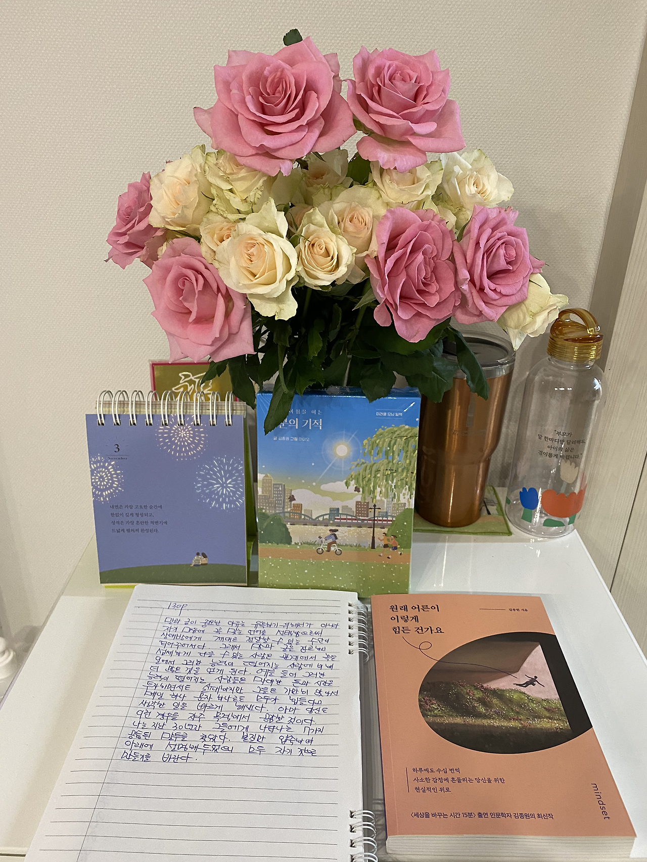 다음날은 친구들이 집으로 놀러 오기로 해서 아이는 집과 자기의 방을 아이답게 말끔하게 정리하고 밤 필사까지 모두 마친 상태다. 언제나 아이는 하나를 정하면 그다음 뭐를 해야 하는지 말하지 않아도 그대로 진행한다. 오후에는 학원 선생님께서 치킨 매장에서 치킨을 사주신다고 해 6시 약속까지 즐거운 시간을 보내고 올 것이다. 언제나 지금 할 일에 집중하고 미루지 않는 이런 습관을 아이는 스스로 지키며 하루를 사랑할 줄 안다. 늘 지성처럼 그렇게.