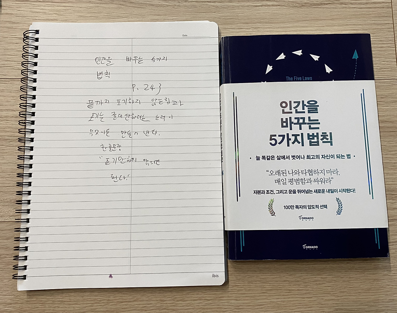 2. 인간을 바꾸는 5가지 법칙 243p를 읽고 중3 필사
