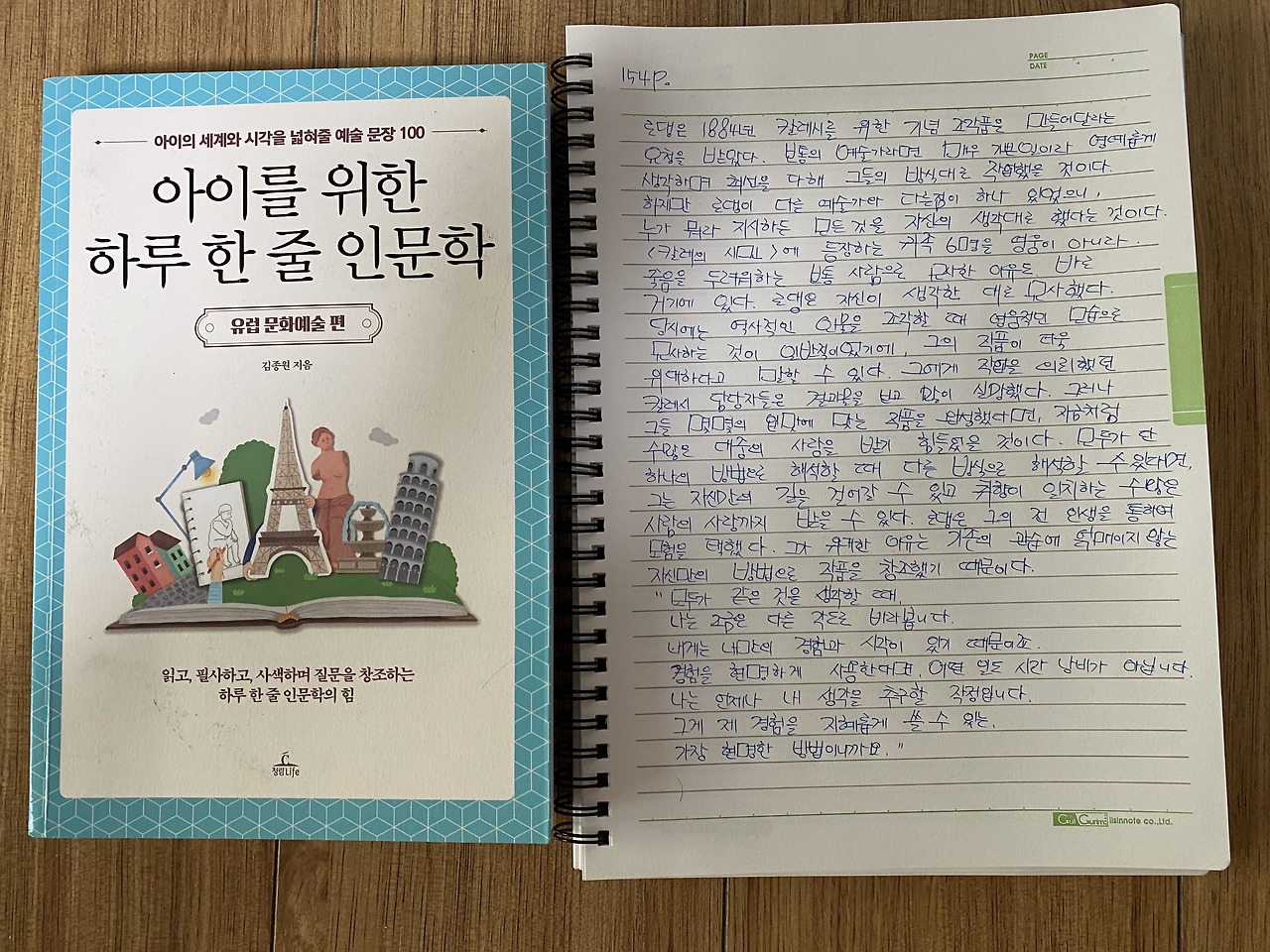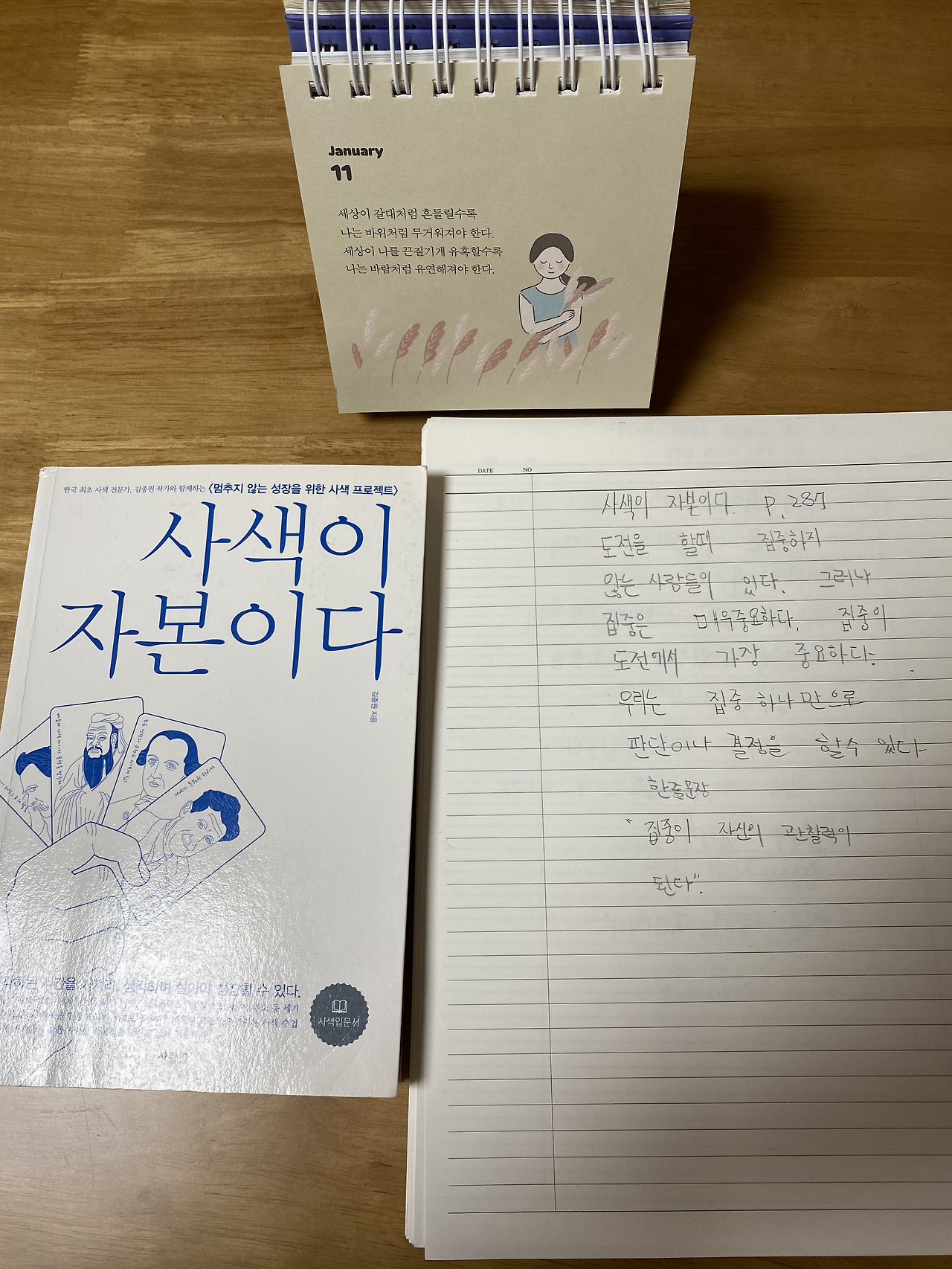 큰아이는 나처럼 성별이 같고 둘째와도 늘 친근하지만 5학년 때부터 변성기가 오며 몸과 마음에 찾아오는 변화를 엄마로서 유심하나 무심하게 조용히 지켜봐야 한다. 이제 더 이상 아이가 아닌 것 같고 6학년이 지나며 이미 키는 나보다 크게 자랐으며 별 다른 건 없지만 가끔 아무것도 아닌 일에 눈물을 보이는 사소함 외에는 크게 다름없이 자신의 생활에 충실하다. 며칠 후면 부모는 가지 못하는 초등학교 졸업을 앞두고 있으며 초등학교 4학년 때부터 시작한 큰 아이 때 함께 하지 못했던 ‘필사’의 시간을 통해 우리는 서로의 얼굴을 보거나 소통하며 같은 책을 읽으며 정서를 교환하고 교감할 수 있다.