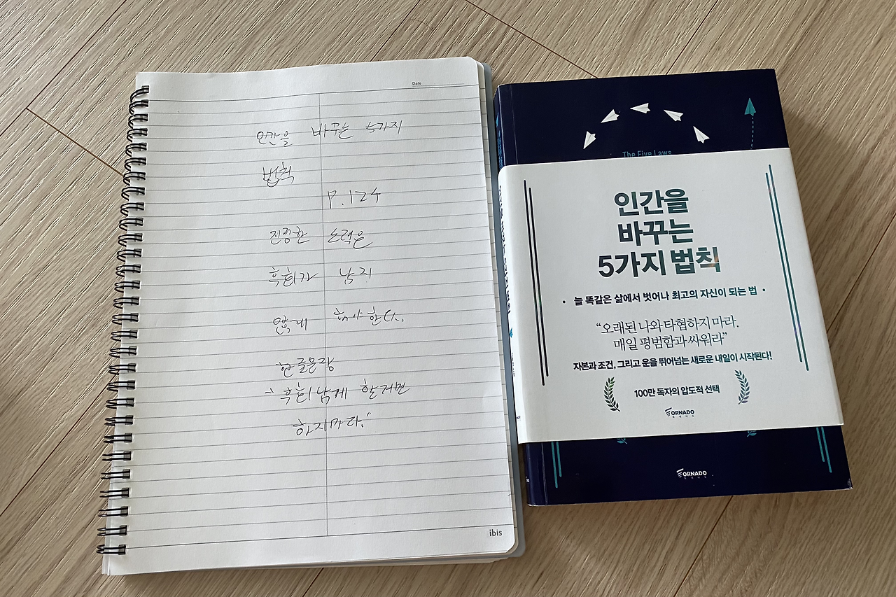 3. 인간을 바꾸는 5가지 법칙 124p를 읽고 중3 필사