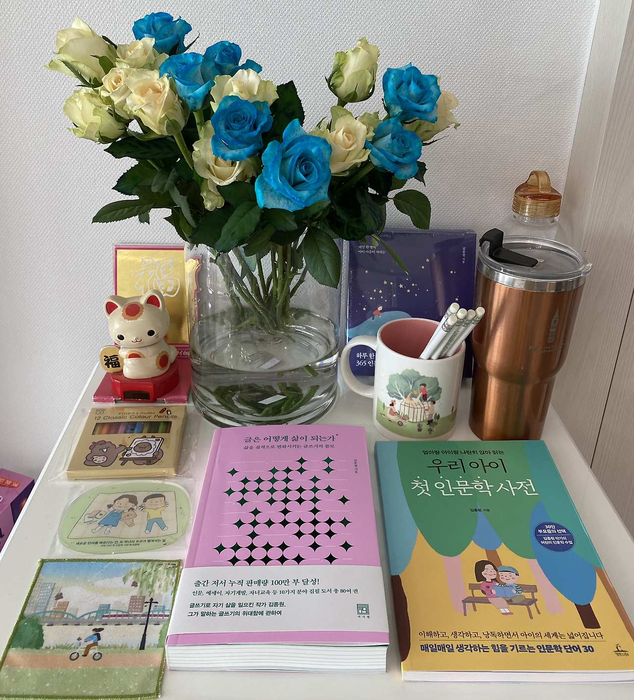 언제 올지 온다는 사실을 알지 못하고 바쁜 틈에 택배 문자를 제대로 확인하지 못했으나 딸과 함께 집으로 돌아오던 중 마트에 들러 싱싱해 보이는 장미 꽃다발을 기쁜 마음으로 만나고 함께 왔으므로 새로 온 책과 꽃과 나와 모두가 하나 되어 자신의 곳곳에서 보고 쓰고 낭송하며 갈 길로 향하는 유일한 오후를 맞이한다.