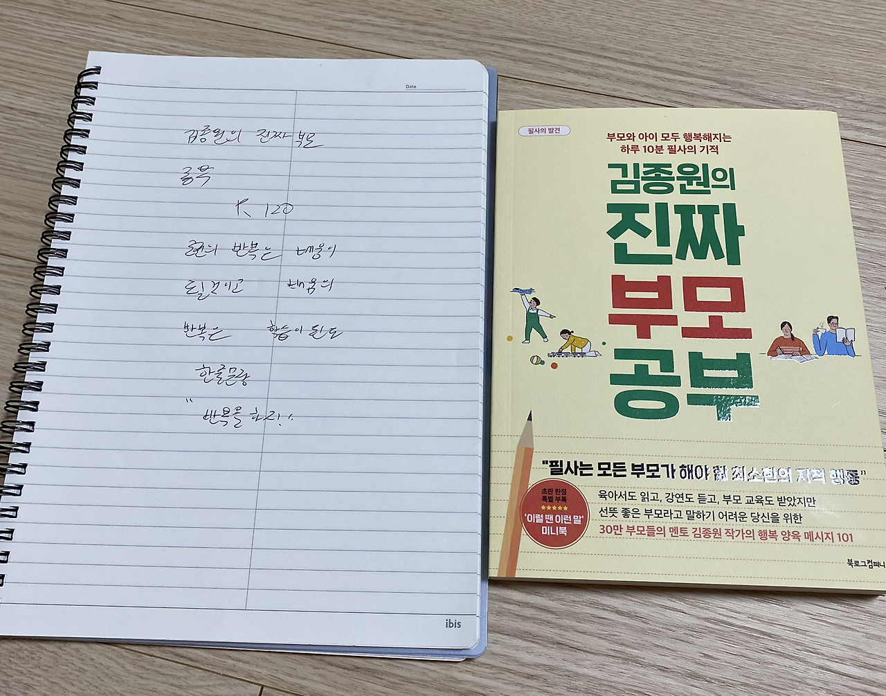 2. 김종원의 진짜 부모 공부 120p를 읽고 중3 필사