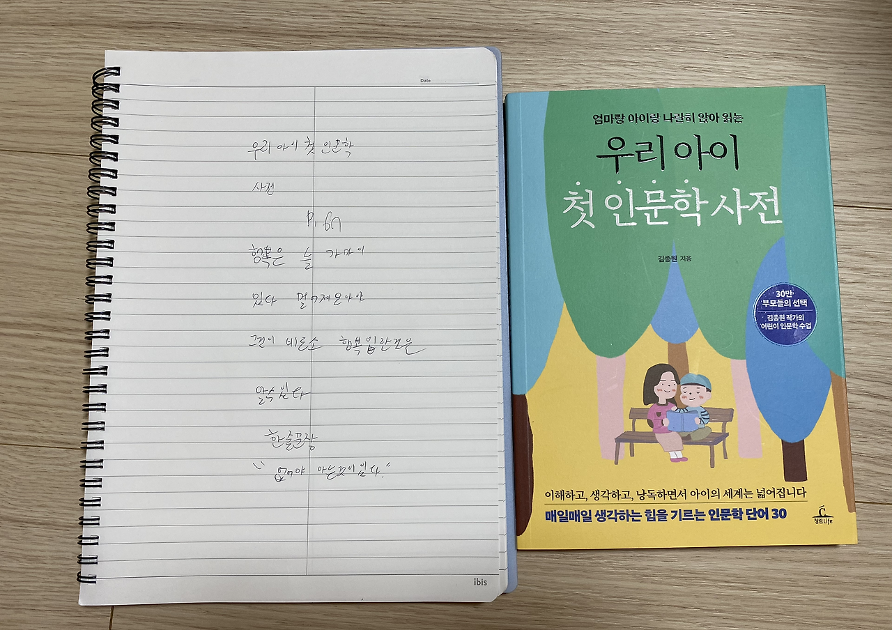 2. 우리 아이 첫 인문학 사전 67p를 읽고 중3 필사