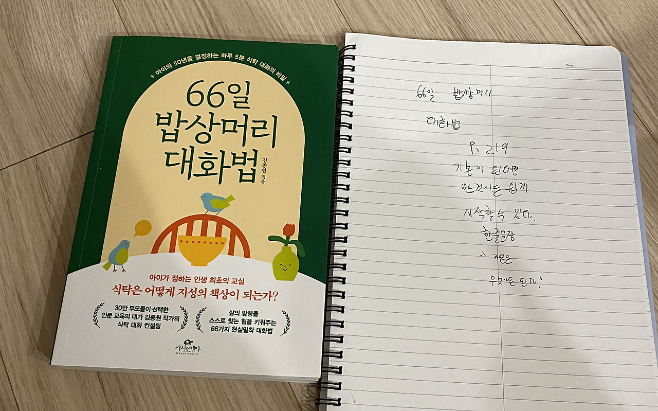 2. 66일 밥상머리 대화법 219p를 읽고 중3 필사
