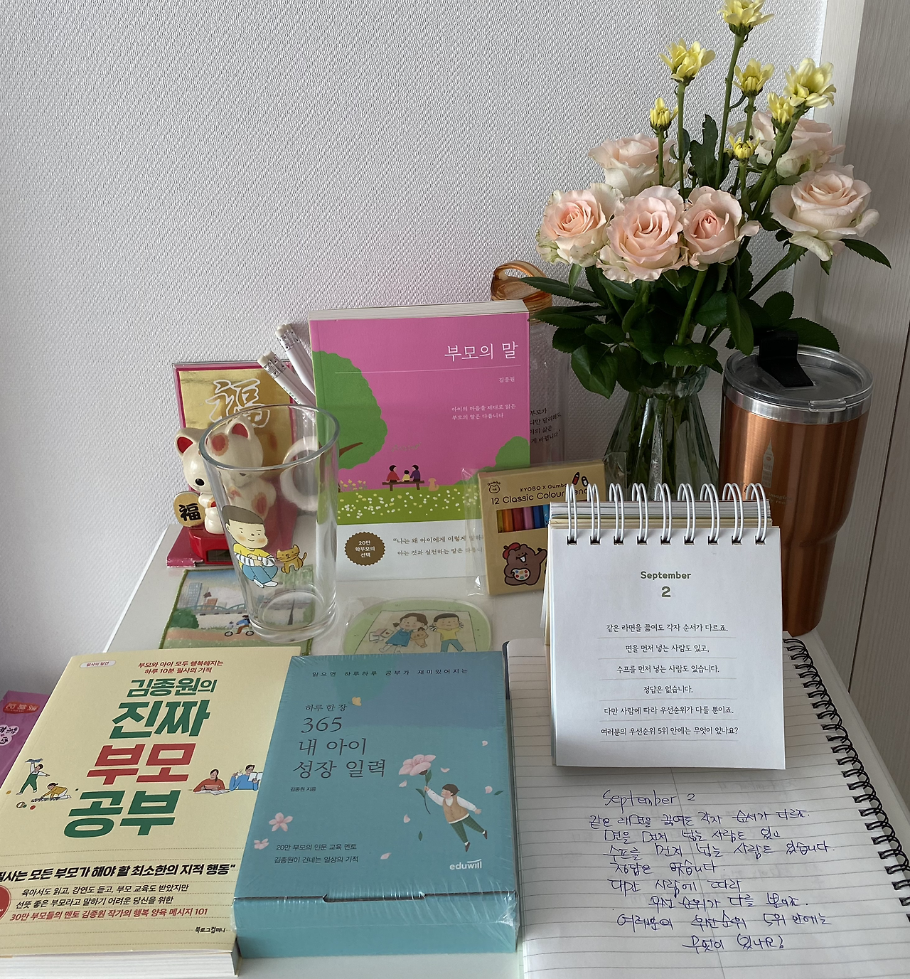 아이가 생각한 질문은 글에서 멈추지 않을 거라는 건 매일 아이가 보고 쓰며 스스로 발견해 가는 아이와 나누는 지성의 대지가 있어 가능한 일이다. 아이의 생각을 방해하지 않고 인정해 주며 내가 내 길을 가는 것이 아이와 가족에 대한 예의라는 것을 걱정하지 않는다.