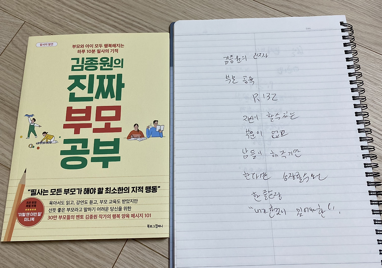 3. 김종원의 진짜 부모 공부 132p를 읽고 중3 필사