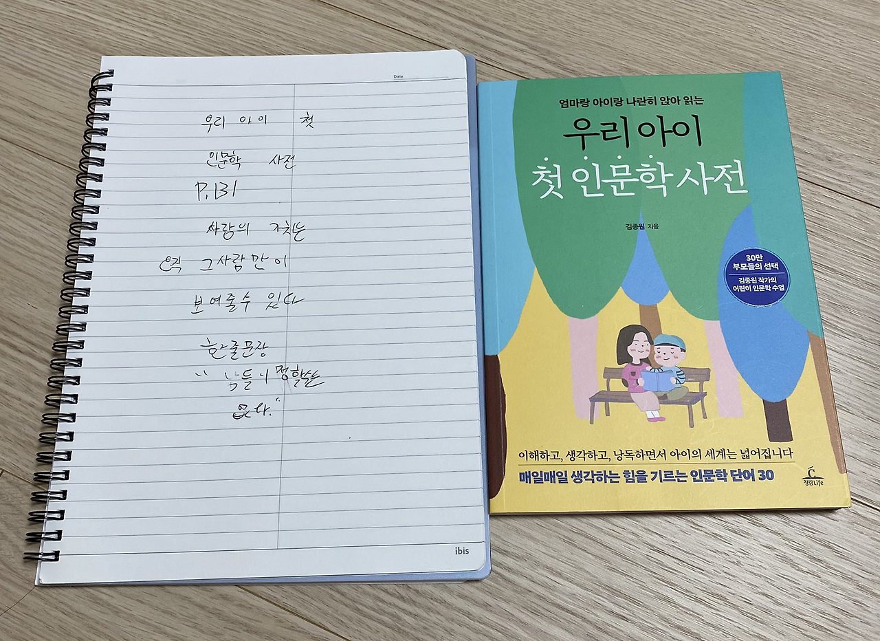 2. 우리 아이 첫 인문학 사전 131p를 읽고 중3 필사