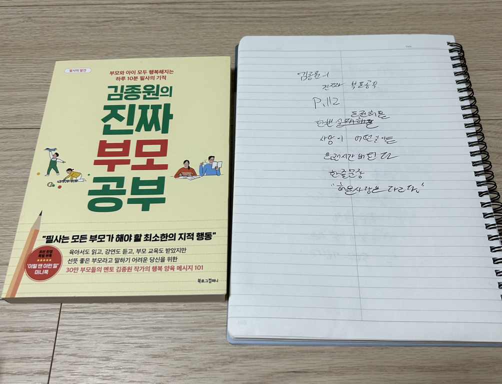 2. 김종원의 진짜 부모 공부 112p를 읽고 중3 필사