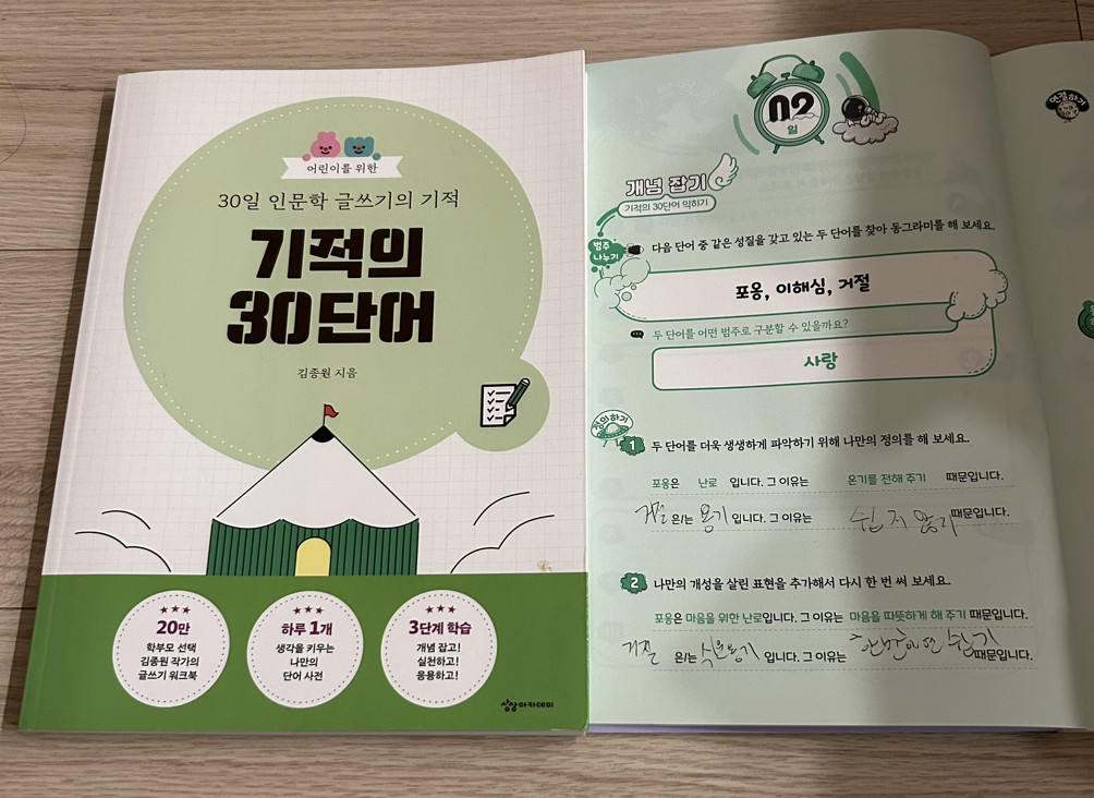 둘째가 쓴 ‘기적의 30 단어’ 워크북 오늘의 글에서 거절과 용기의 맥락을 그려본다. 한 번이 어렵지 거절 역시 나를 위한 적절한 용기를 내 하며 사는 것이 바람직한 나를 위한 시도이자 결단이라는 걸 생각했구나.지금보다 나은 생각을 하며 산다는 건 이 세상의 어떤 정해진 공부와는 차원이 다른 지적 수준의 일이니까.