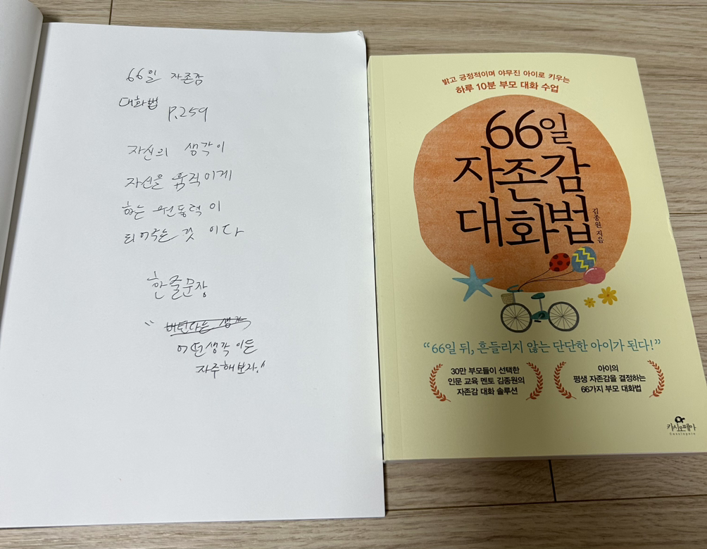 3. 66일 자존감 대화법 259p를 읽고 중3 필사