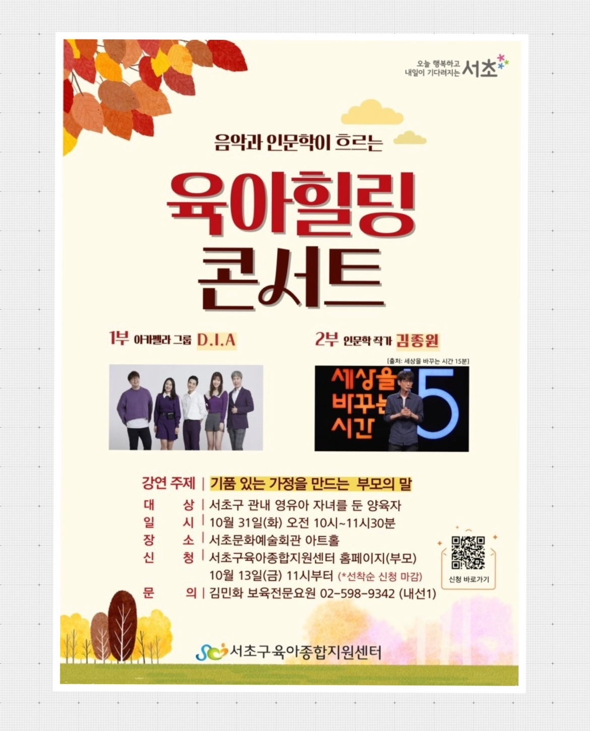 2023.10 월 31일 지성 김종원 작가님 육아 힐링 강의 안내