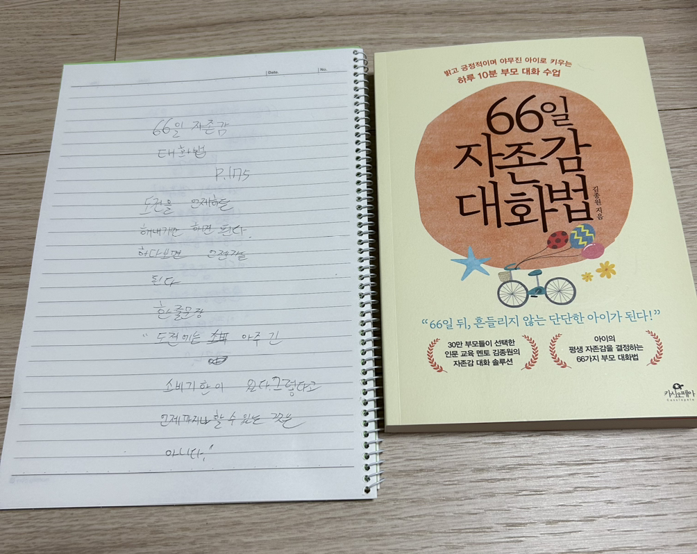 2. 66일 자존감 대화법 175p를 읽고 중3 필사