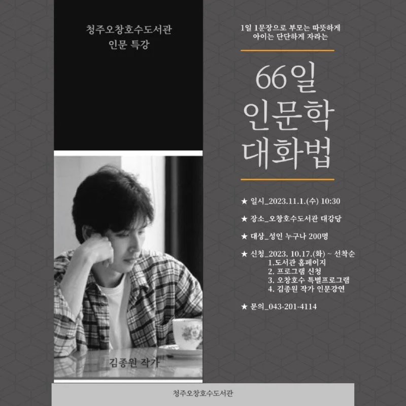 5. 김종원 작가 ‘청주 오항호수 도서관’인문 특강 소식입니다