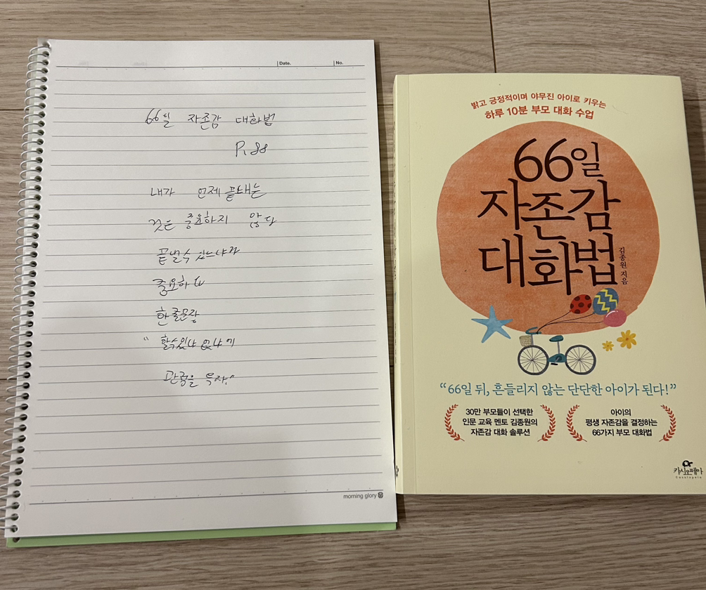 2.66일 자존감 대화법 88p를 읽고 중3 필사