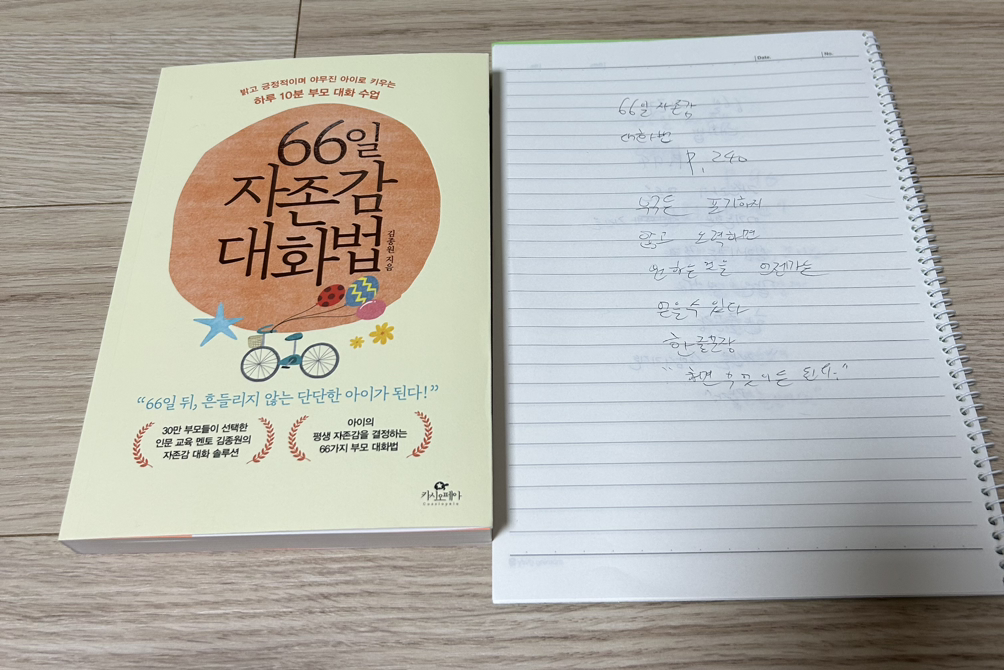 2. 66일 자존감 대화법 240p를 읽고 중3 필사