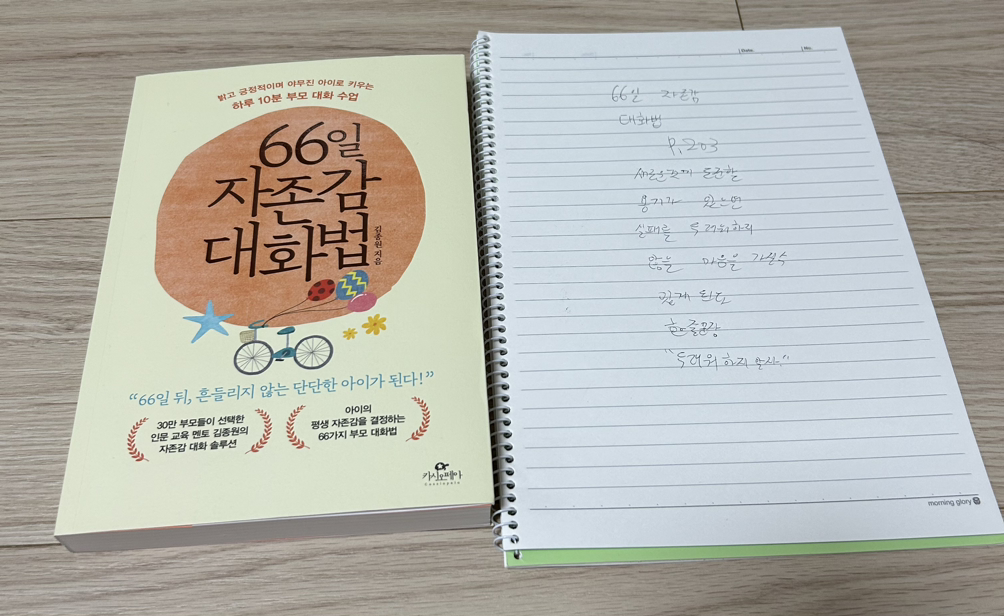 2. 66일 자존감 대화법 203p를 읽고 중3 필사