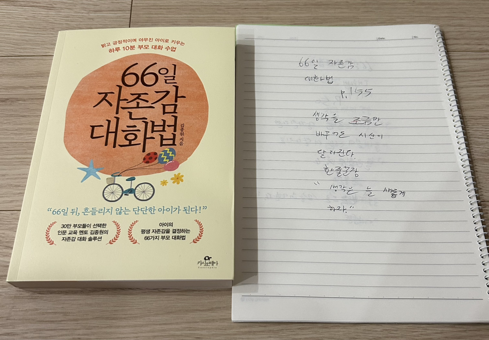 1. 66일 자존감 대화법 155p를 읽고 중3 필사