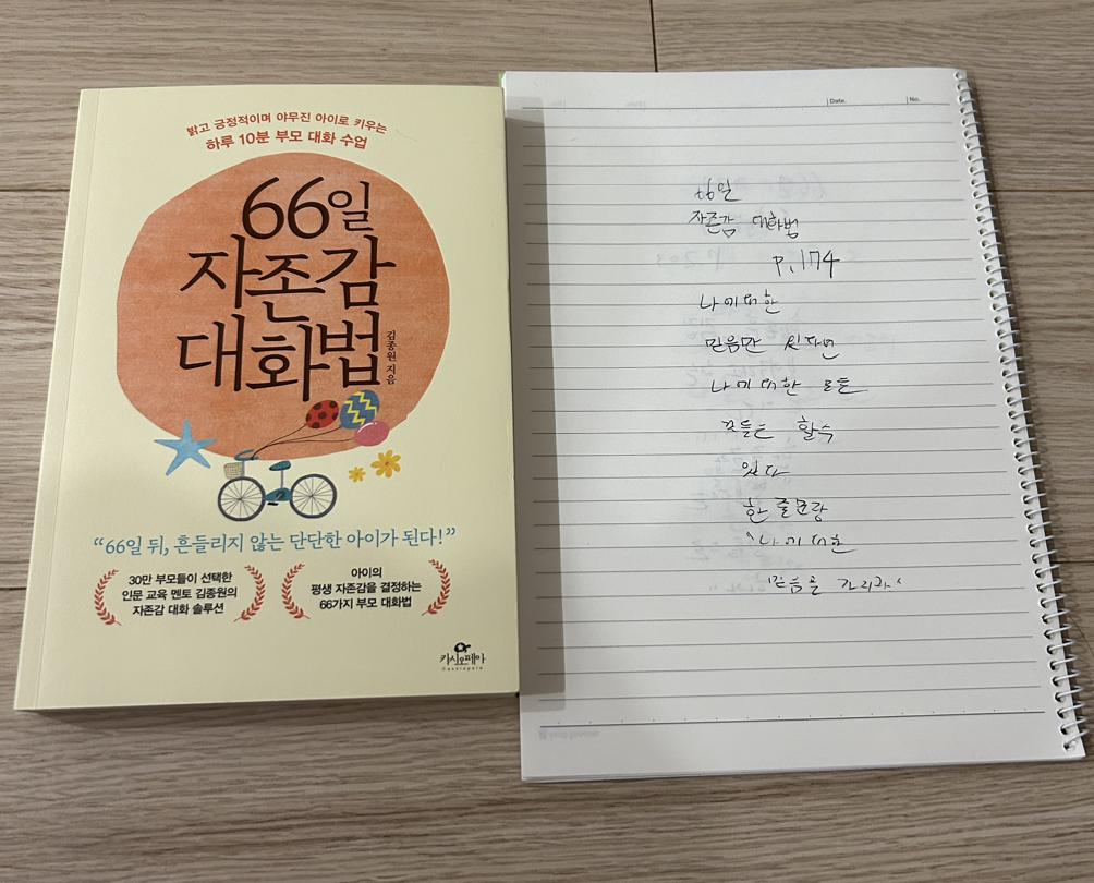 2. 66 일 자존감 대화법 174p를 읽고 중3 필사
