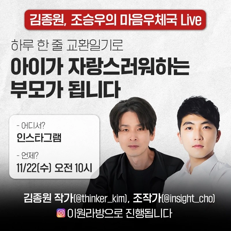 김종원 작가님, 스몰빅 조승우 작가님 인스타 이원 라이브 방송 안내