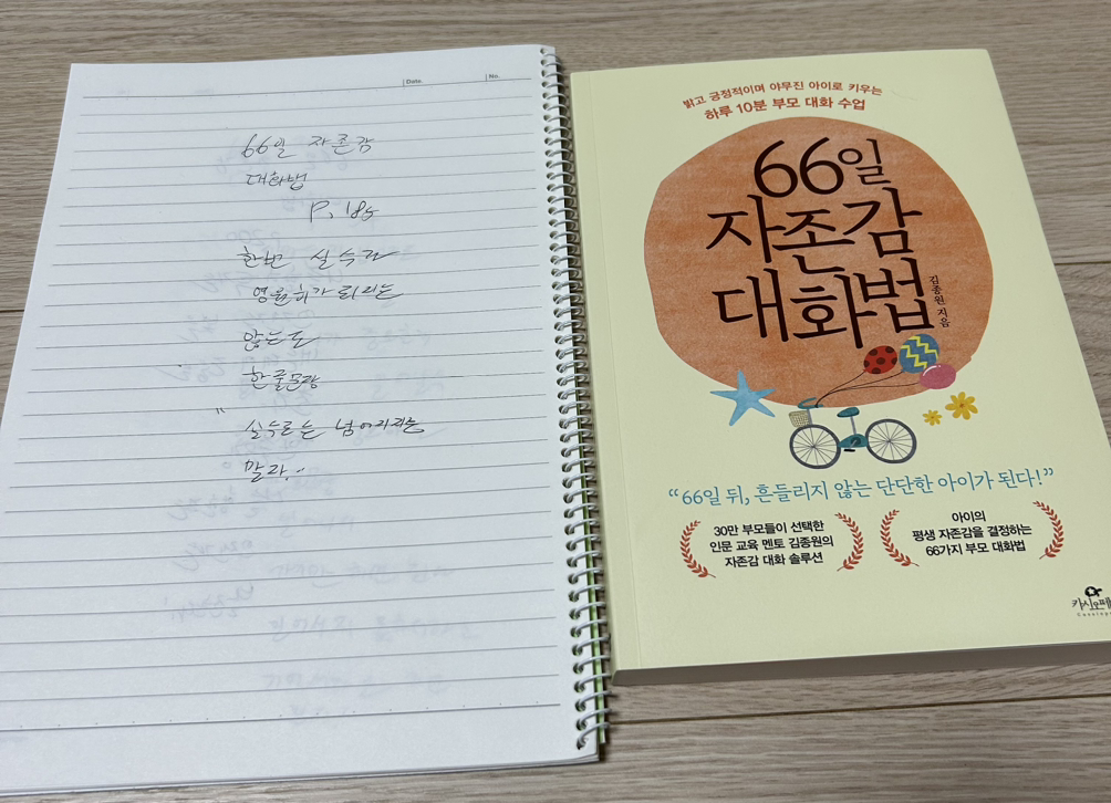 2. 66일 자존감 대화법 185p를 읽고 중3 필사