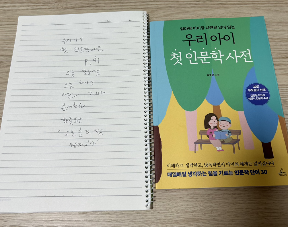 2. 우리 아이 첫 인문학 사전 41p를 읽고 중3 필사