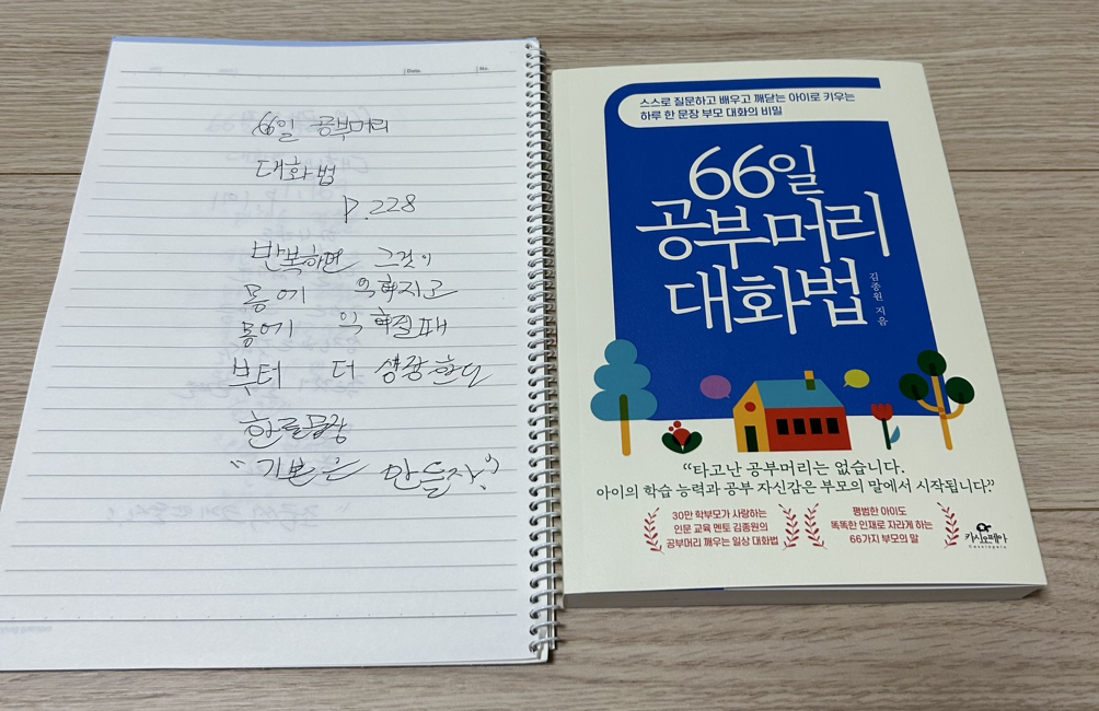 2. 66일 공부머리 대화법 228p를 읽고 중3 필사